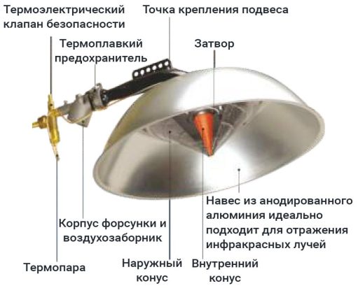 Все брудеры оснащены термоэлектрическим предохранительным клапаном, который перекрывает подачу газа в случае случайного отключения электроэнергии или сбоя в системе подачи (ХОЛОДНАЯ ЗАЩИТА). В случае возникновения избыточного пламени (горение вблизи точки входа) брудер защищен термическим предохранителем, который выходит из строя при необычном повышении температуры нагревателя (ГОРЯЧАЯ ЗАЩИТА).