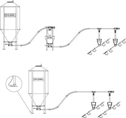 Эта кормушка была разработана для сокращения потерь корма и улучшения его конверсии, снизить трудозатраты и сэкономить время. Решётка предотвращает попадание цыплят на поддон. Кормушку можно подвешивать и регулировать высоту расположения. Коническое удлинение –это новейшее дополнение от Dhumal, которое позволяет рабочему легко засыпать корм в конус.