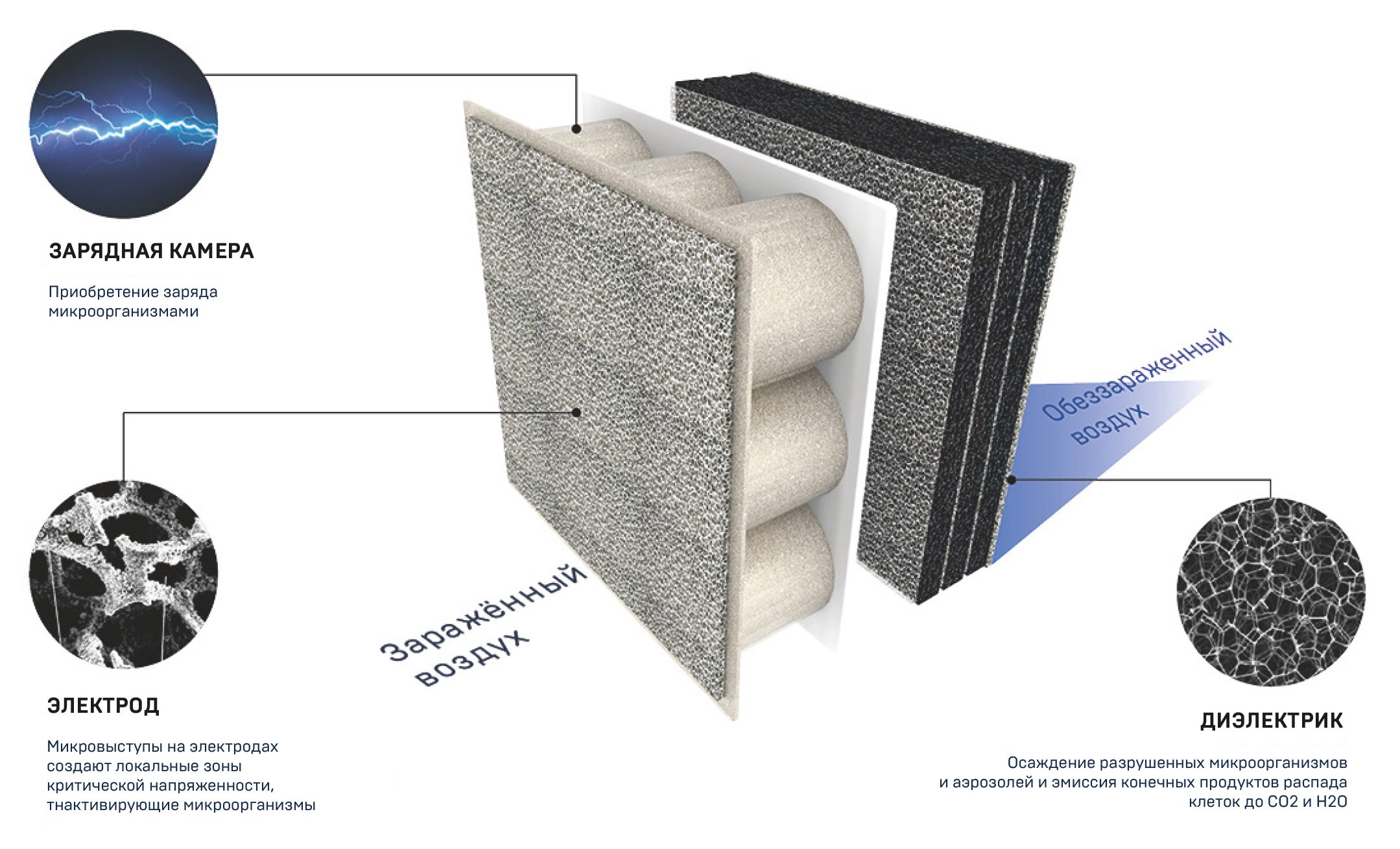 Эффективность обеззараживания составляет не менее 99,9%: неселективный метод уничтожает все виды бактерий, плесневых грибов и вирусов.
