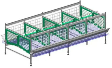 Все наши клетки оснащены механизмом кормления с тележкой на верхней направляющей и подающими трубками для равномерного распределения корма. Запатентованная гравиметрическая система дозирования гарантирует, что каждый отсек получает одинаковое количество корма.